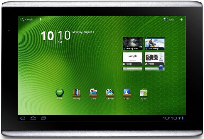 Acer Iconia Tab A500 comes with Android 3.0 Honeycomb flavored with Acer UI 4.5 customizations, running on a NVIDIA Tegra 250 1GHz dual-core processor, sporting a 10.1-inch 1280 x 800 LCD screen, 1GB RAM, equipped with a 5 megapixel camera around back and an additional front-facing 2 megapixel camera, 16GB of flash storage, micro-SD card slot support for memory expansion up to 32GB, 1080p video output over the built-in HDMI port, powered by 3260mAh battery, Need for Speed: Shift game pre-loaded, Android Market and much more.