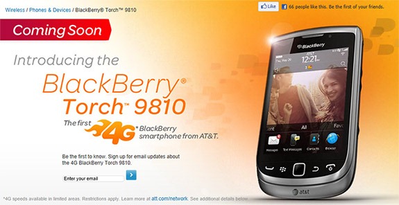 A few hours ago, RIM has officially announced three BlackBerry Torch devices – BlackBerry Torch 9810, and the full-touch screen BlackBerry Torch 9850 / 9860 handsets, along with the BlackBerry Bold 9900 handset. You already know that the BlackBerry Torch 9850 is CDMA version of the Torch 9850. Following the RIM announcement, AT&T has also confirmed its upcoming BlackBerry line for its HSPA+ 4G air waves. AT&T has mentioned in its press release that the BlackBerry Torch 9810, Torch 9860, and the BlackBerry Bold 9900 handset will be released with HSPA+ radio inside the boards. AT&T will first launch the 4G HSPA+ capable BlackBerry Torch 9810 in August, and the BlackBerry Torch 9860, and BlackBerry Bold 9900 slated to hit the AT&T markets later this year. AT&T hasn’t provided the price info of these handsets.