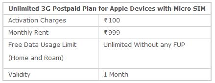 Apple Bsnl 3G Unlimited Tariffs for Postpaid users