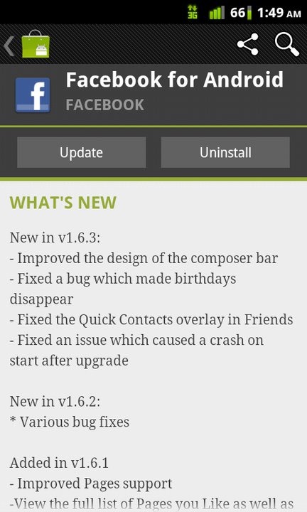 After upgrading to Facebook 1.6.3 version, the Android users will see an improved design of the compose bar. And if this is not enough for a minor release then there are still other fixes to come. The updated version is also carrying various bug fixes for the previous version v1.6.2, which made birthdays disappear, fixing the Quick Contacts overlay in Friends and also fixing an issue which leads to a crash on start after upgrading.
