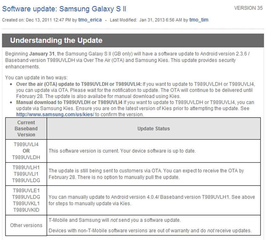 T-Mobile Galaxy S II Update