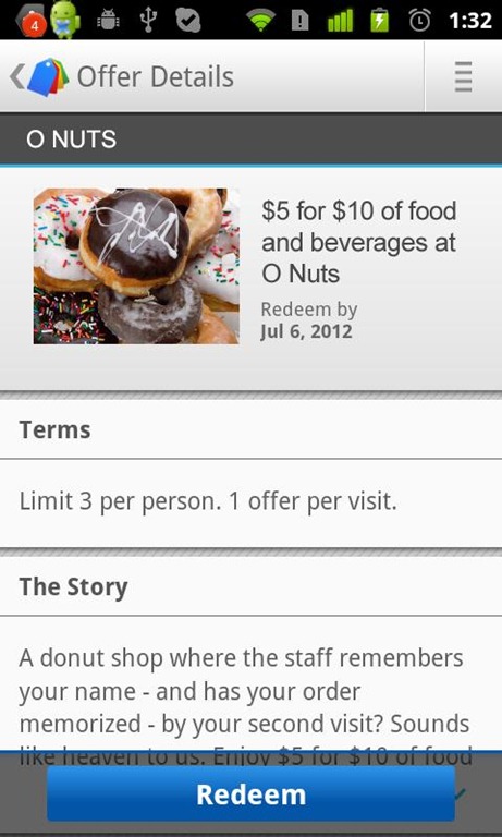 Looks like Google is on fire today. A few hours ago, we’ve already reported about the updates for Google+, Google Reader and Google Docs apps. All these 3 apps have adopted some of the look-and-feel of Android 4.0 Ice Cream Sandwich OS style. Now, a new app is awaiting in the Android Market for you. In late May. Google has announced a new app called “Offers” along with the Google Wallet app. Offers are delivered based on location and preferences which works hand-in-hand with Google Wallet. Google has already released the Wallet app in late September. Finally, Google has now released the Google Offers app for Android platform. It took a long time for the company to announce the availability of the Google Offers app. With the help of the Offers app, users can view, purchase and redeem deals right from their Android devices. You can use the app without the NFC chip required for Google Wallet. Yes, NFC chip is not required to use this app, you can redeem it straight from the phone, so no need to worry about the lack of NFC feature on your handset. To redeem offers, you just have to tap your phone.