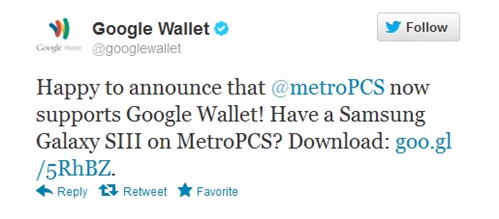 Until now, Sprint and U.S. Cellular have only been the official partners for Google Wallet functionality. Today, we’ve some good news for MetroPCS customers. Google has tweeted they’ve added the Google Wallet support for the third wireless carrier in the U.S. and asking whether you’ve a MetroPCS branded Samsung Galaxy S III handset or not? Yes, the Galaxy S III is the only compatible handset on MetroPCS network with Google Wallet functionality. The carrier has recently announced the S III availability for $499.