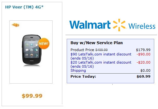 HP Veer 4G Pricing At Walmart And AT&T