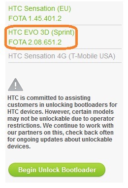 If you’ve got the HTC EVO 3D from Sprint, you should be good to go to unlock bootloaders using the easy and simple web based tool. It looks like, to start the bootloader unlocking process, your handset should’ve upgraded with the latest firmware version 2.08.651.2. Just a few hours ago, we’ve reported that Sprint has started pushing out the a maintenance update 2.08.651.2 for the HTC EVO 3D handsets. So, if you are looking to unlock the bootloader for your device, you should head over to HTCDev website as a registered user. However, it is a very risky process to unlock bootloader of your handset. You may have to give up your warranty coverage. HTC warns “It is our responsibility to caution you that not all claims resulting or caused by or from the unlocking of the bootloader may be covered under warranty.”