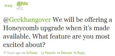 According to Google’s terms of service, tablets running the Android versions prior to Honeycomb should not be eligible to upgraded to the tablet based operating system, Android 3.0 Honeycomb. But who cares! We want Honeycomb tablets only. HTC has officially confirmed, while replaying to a question on Twitter – “will be offering a Honeycomb upgrade when it’s made available.” Back at MWC 2011 event, HTC Flayer has been unveiled running with Android 2.3 Gingerbread and there were no much discussions about the Honeycomb update for the tablet.