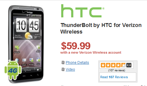 Here is your shot. You can grab the HTC Thunderbolt at Wirefly Stores (hit the link) for just $59.99, and you should be committed to subscribe a two-year data plan with Verizon Wireless, which start at $30 a month for 2GB, and go up to $50 and $80 per month for 5GB and 10GB respectively. This deal is valid for Verizon’s new customers only. Verizon’s existing customers have to pay $149.99.