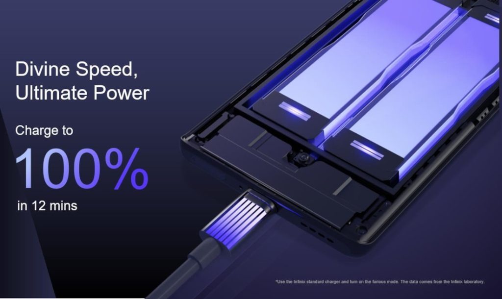 The 180W Thunder Charge technology is one of the main highlights of this device. Infinix confirms it charges the 4500mAh battery from 1% to 100% in 12 minutes. This technology supports the highest powered conversion on any Infinix device to date, which avoids overloads and overheating.