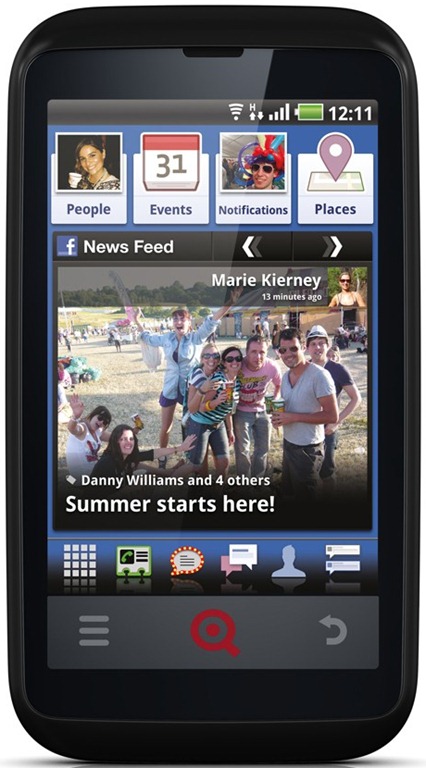 INQ Cloud Touch is running with the Android 2.2 Froyo and INQ is planning to get Android 2.3 on the device further down the road. Sporting a 3.5-inch capacitive touchscreen display, 5 megapixel autofocus camera, all manner of mail support including Exchange, Facebook support, and ‘Spotify’ onboard as the de facto music app with a dedicated key, offering he users unlimited music. The Cloud’s home screens feature a trove of Facebook options ranging from a visual news feed with images and video to one-button access to features like Facebook Chat and location-based check-ins.