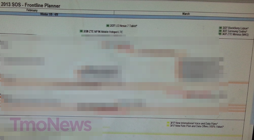 The leaked roadmap also has revealed that T-Mobile will launch a new mobile hotspot LTE capable device made by ZTE on February 20, and LG Nexus 7 (7.7-inch) tablet on February 27 as well. T-Mobile is also planning to launch a Samsung smartphone, Codina on March 27, and a new rate plan and data offers will be introduced on March 17.