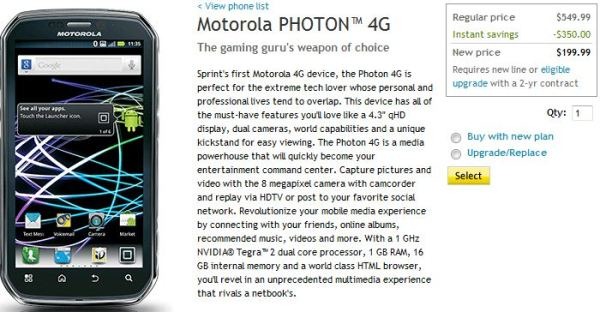 Place an order on the Motorola Photon 4G at Sprint Online Stores for $199.99, and at Amazon Stores, RadioShack Stores (hit the links) for $179.99. All the price tags are applicable for the customers who prefer to sign a two-year contract with Sprint.