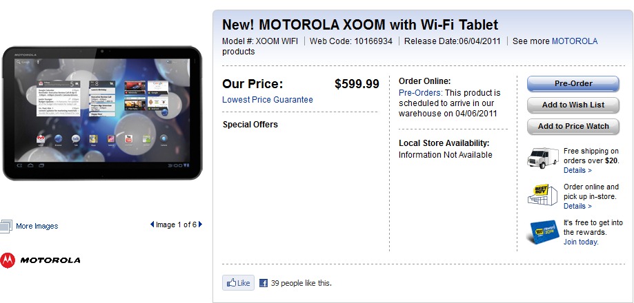 Motorola Xoom Wi-Fi only variant has finally set to release in Canada on April 6 for $599.99 through the retailers chains- Best Buy and Future Shop stores. Previously, it is being heard that the Wi-Fi Xoom will hit the both retailers in mid-April, but it’s a good sign that is coming earlier than expected.