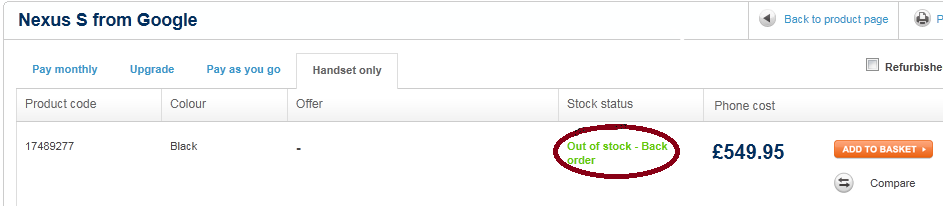Nexus S Is ‘Out of Stock’ At Carphone Warehouse; A Glitch?