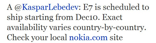 So Nokia E7 might be reaching us before Christmas according to above tweet by Nokia itself as it is starting shipping from December. Nokia E7 is expected to cost around $640.
