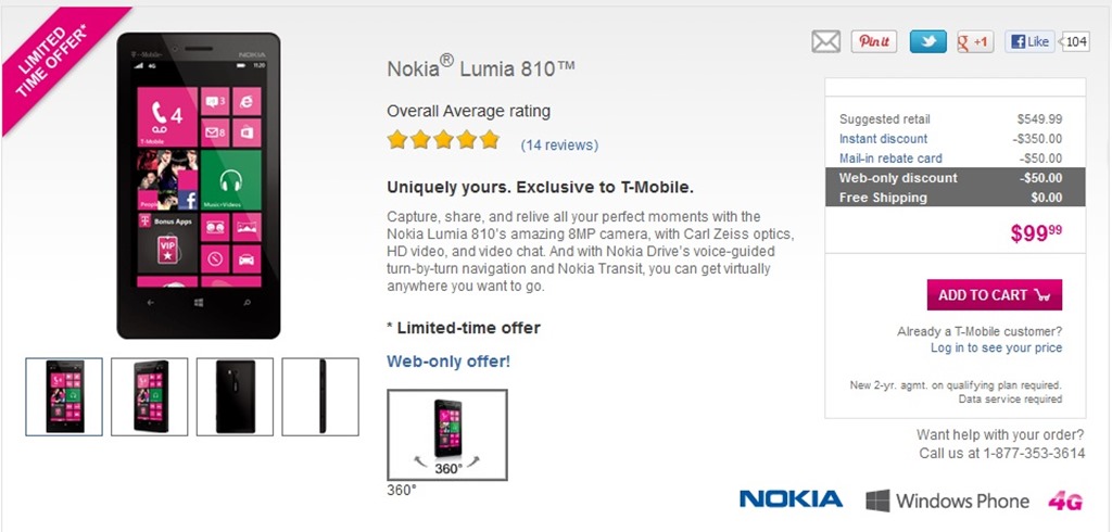 Nokia Lumia 810 T-Mobile Pricing