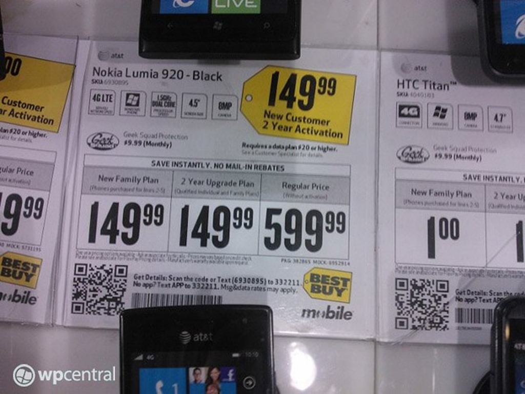Nokia Lumia 920 Pricing ($149) Appeared at Best Buy Store