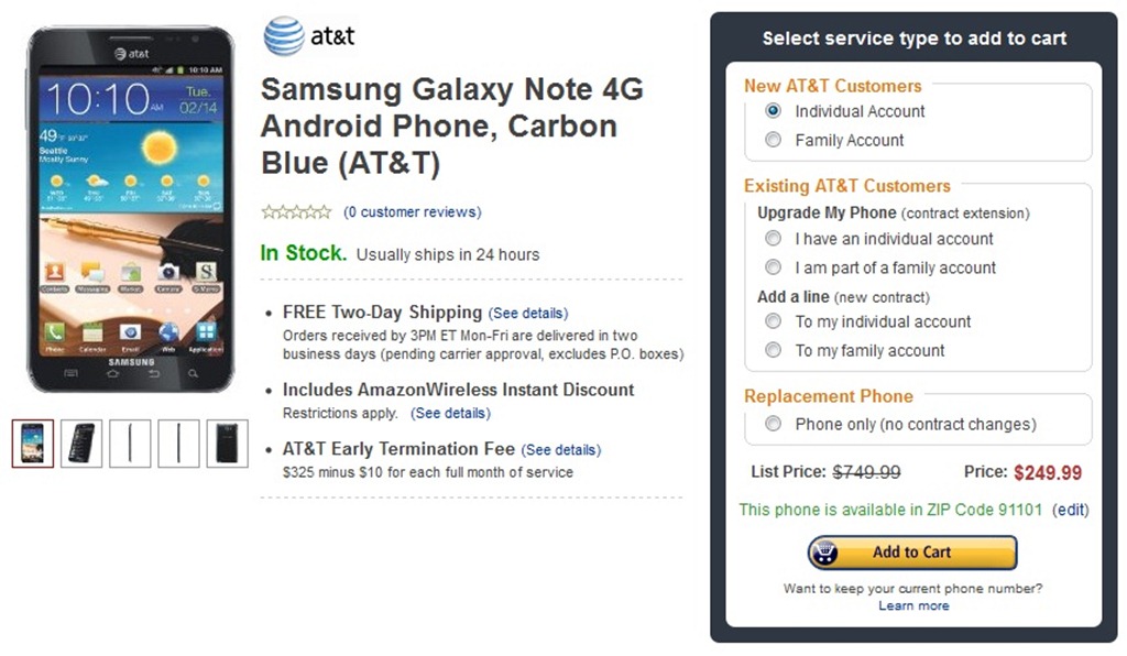 Head over to Amazon Wireless Sale Page to take advantage of the deal, grabbing the Samsung Galaxy Note for just $249.99 both in Carbon Blue and Ceramic White colored variants, when you purchase a phone with a two-year agreement. The deal is applicable for both new and existing AT&T customers.