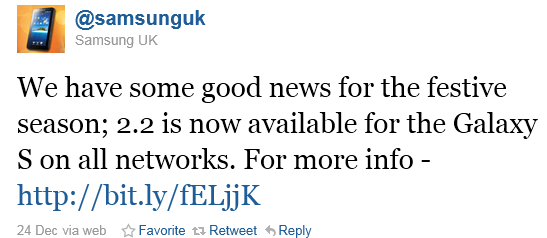 Samsung has started upgrading Android 2.2 Froyo updates to its Galaxy S handset back in October for different territories in the world. Now its UK’s turn. Samsung UK @Twitter has announced that Samsung is now rolling out Froyo updates for Galaxy S handsets via all network carriers across UK.