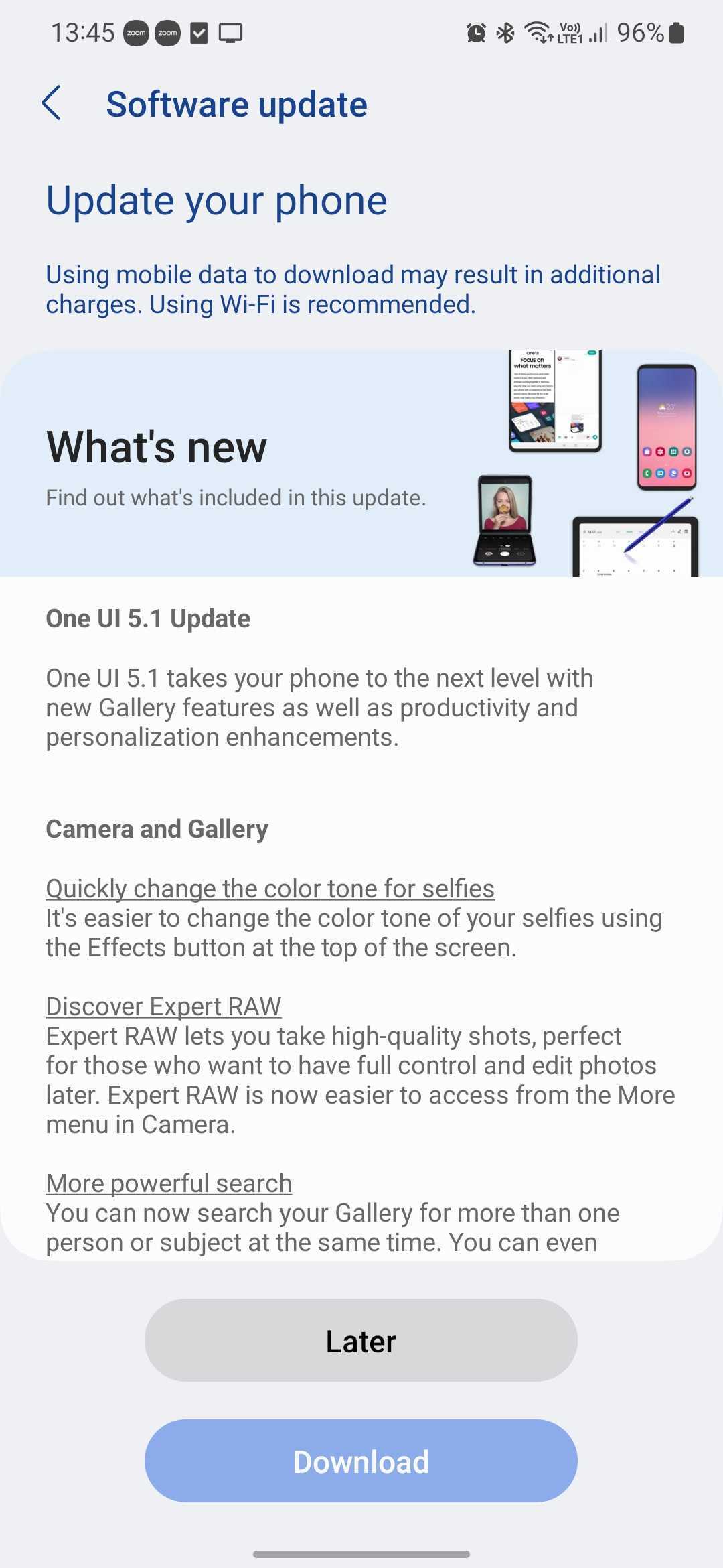 The new One UI 5.1 build will get you Expert RAW quality-of-life features, a couple of new widgets, some improvements to the Camera app, individual wallpapers for Modes and Scenes, better media output and connectivity with Wi-Fi speakers, a Shared Family Album for the Gallery, along with the February 2023 security patch.