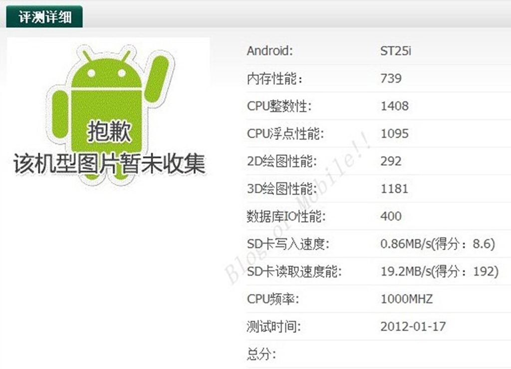 Sony ST25i “Kumquat” Appears on AnTuTu
