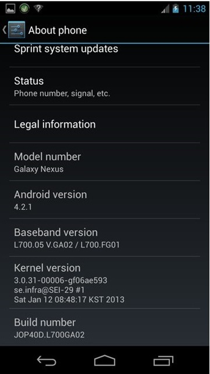 Back in November of 2012, GSM Galaxy Nexus has been upgraded to Android 4.2.1 build, while the Sprint branded Galaxy Nexus got its Android 4.1 update back in September of last year. Unfortunately, Verizon’s Galaxy Nexus model has not been updated yet.