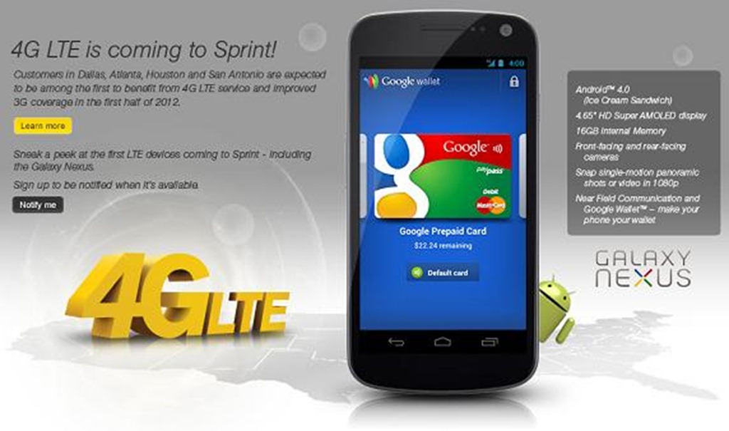 Well, here it is folks. We knew it was coming. Sprint has officially confirmed that it is gearing up to bring the Samsung Galaxy Nexus later this year. Samsung Galaxy Nexus is the carrier;s first 4G LTE enabled handset. Sprint has planned to begin offering its 4G LTE devices in mid-2012.