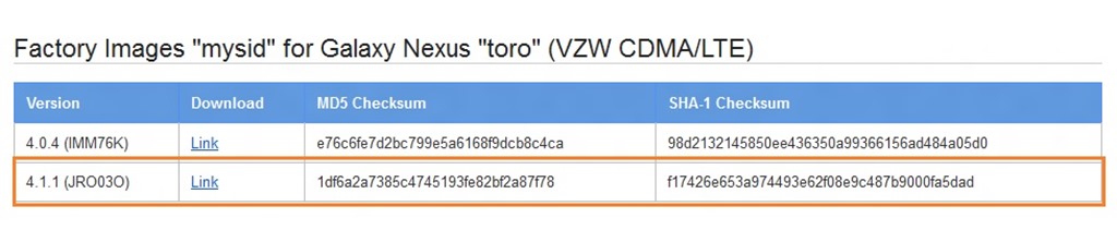 Head over to a dedicated Nexus Factory Images page –> go to “mysid” section for Galaxy Nexus “toro” –> and download the Jelly Bean 4.1.1 (JRO03O) factory image. Or esle you can grab it from the below link.