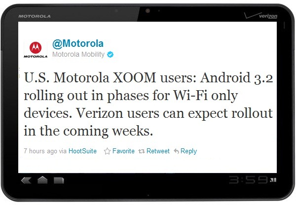 Here is the Tweet by Motorola Mobility About Android 3.2 Update For Verizon Xoom: