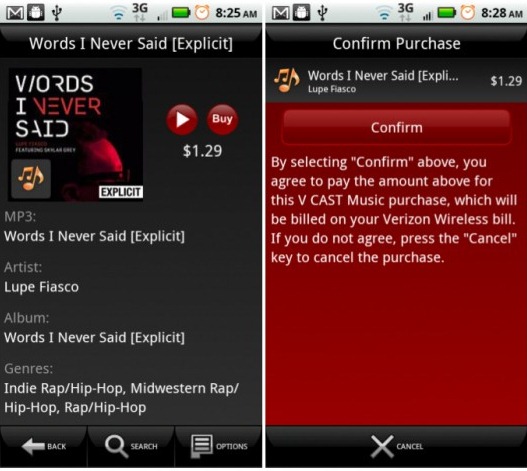 Verizon Wireless officially announced an updated version of V Cast music app for its Android devices. V CAST music app combines all of its music-related V CAST services, allowing users to buy full tracks, ringtones and ringback tones from a single program. The music bought will be DRM (digital rights management) free and all three types of items may be purchased separately or in one bundle.