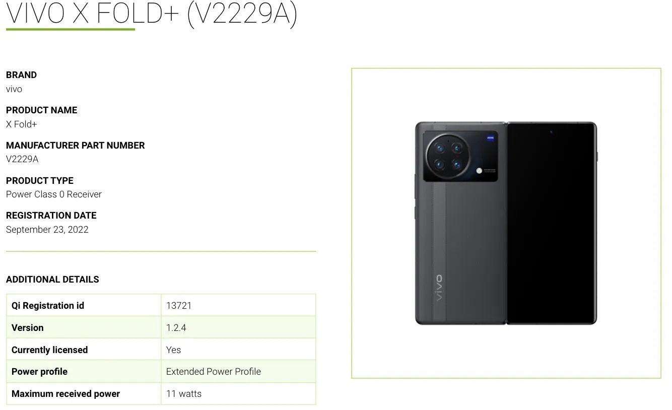 Take a look at the FCC certification for the X Fold+ handset, which has been certified for the Qi Extended Power Profile. Any Qi compatible charger which can output 11W or more will be able to charge the X Fold+ at the maximum level wirelessly. Qi profile is supposed to be supporting up to 15W of charging. Last year’s vivo X Fold shipped with the capability that be chargeable up to 50W wirelessly. So we believe this report is hinting us that X Fold+ does have reverse wireless charging feature, practically turning it into a Qi charging pad at 11W wireless charging speeds.