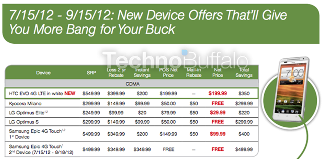 The leaked has also mentioned about the BOGO deal on Samsung Epic 4G Touch handset (which is Sprint’s variant of Samsung’s Galaxy S II) . This device is set for buy-one-get-one free deal, priced at $99.99. The BOGO deal goes live from July 15th through August 15th. If you’re currently on the Sprint network already, stay tuned for more official details.