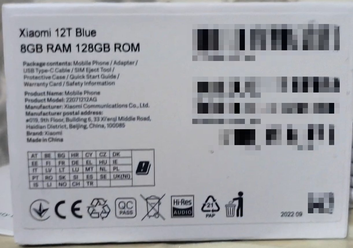 Xiaomi 12T retail box images and 12T series Europe prices revealed